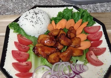 A vibrant mix of authentic Thai flavors, featuring perfectly cooked proteins, fresh vegetables, and savory sauces. A deliciously balanced meal that’s fragrant, flavorful, and satisfying.