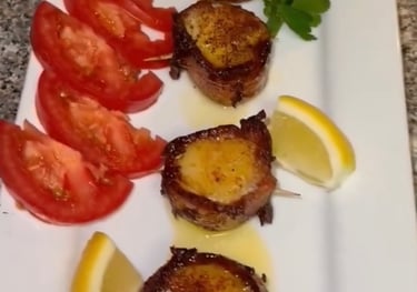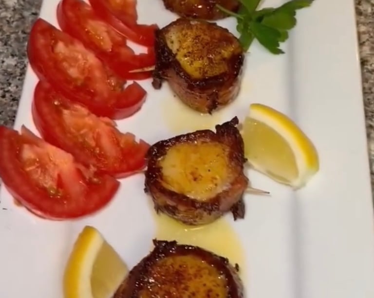 Perfectly seared, tender scallops with a delicate, buttery flavor. Served with complementary sides or sauces, they make for an elegant and satisfying seafood dish.