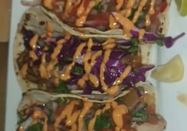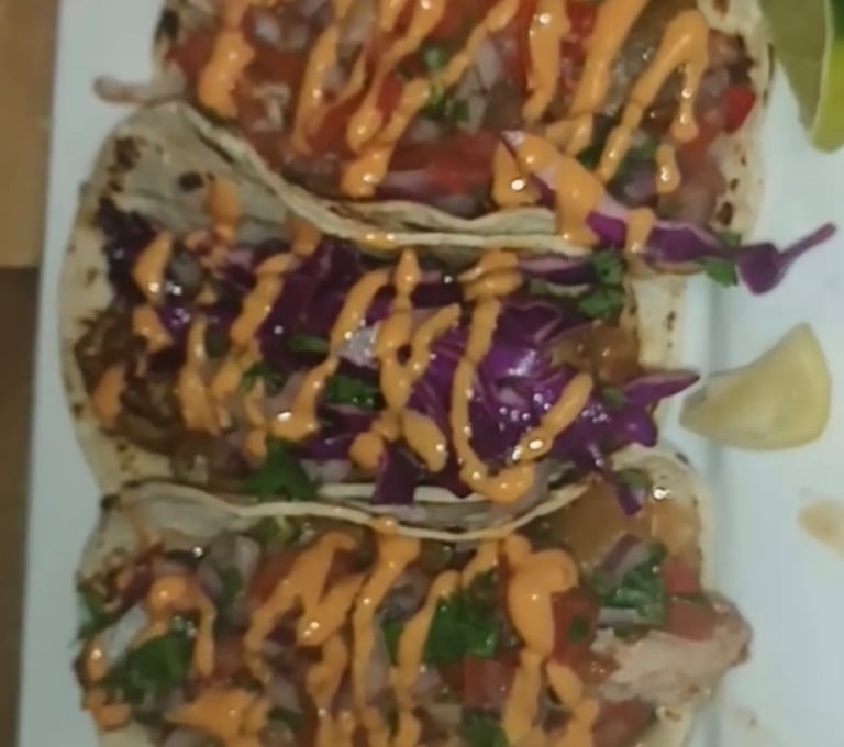 Sizzle, Drizzle Stew Pork,Chicken or beef Tacos