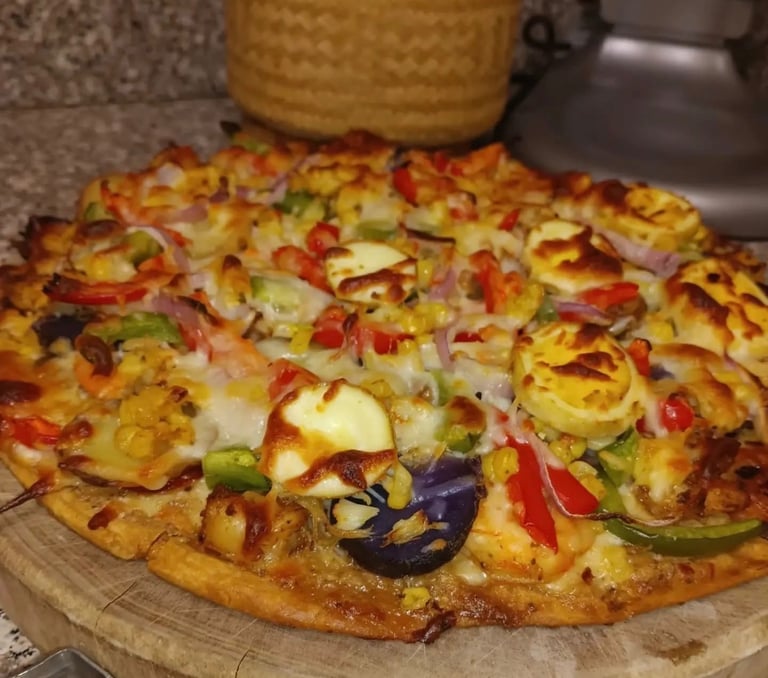 A flavor-packed masterpiece, this pizza combines a cheesy stuffed crust with savory meats and tender, spicy crawfish. Every bite delivers a perfect balance of rich, hearty, and zesty flavors that seafood and meat lovers alike will savor.