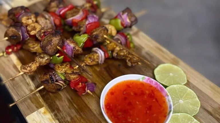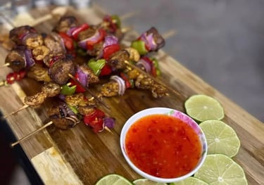 Juicy, marinated chicken grilled on skewers with a smoky, flavorful finish in every bite.