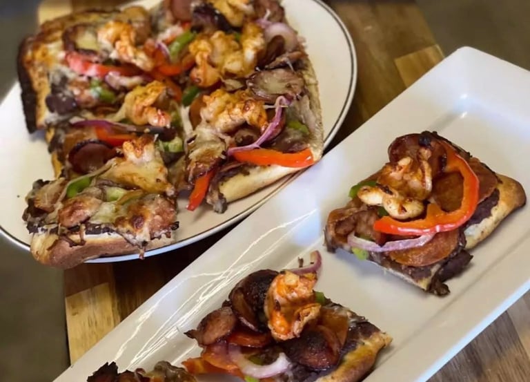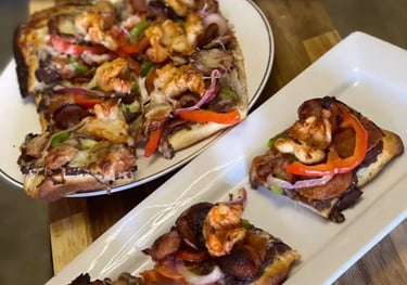 A savory pizza loaded with fresh seafood, melted cheese, and a perfectly seasoned sauce for a bold, ocean-inspired flavor.
