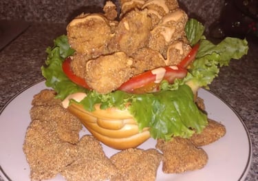 Tender, flaky catfish pieces seasoned and fried to golden perfection, crispy on the outside and juicy on the inside.