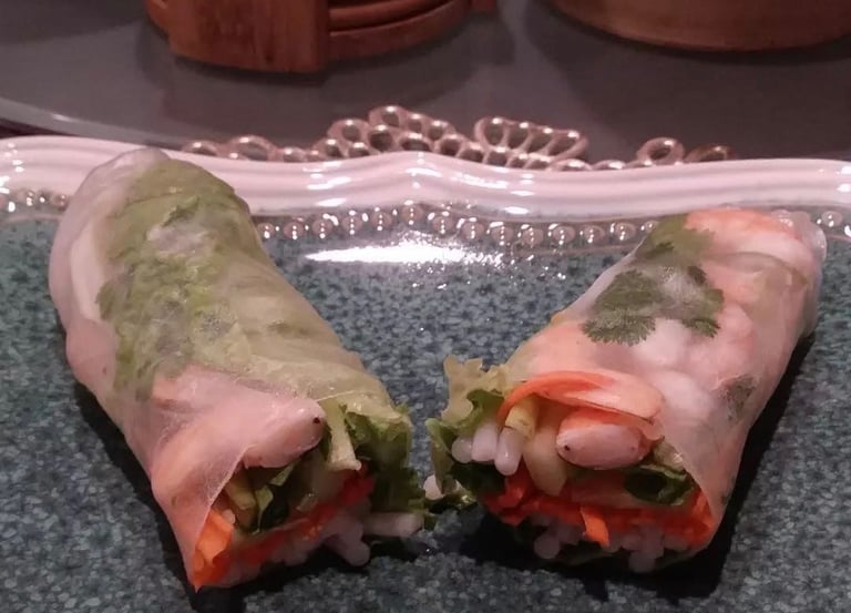Fresh, crisp spring rolls filled with succulent shrimp, crisp veggies, and herbs, served with a flavorful dipping sauce.